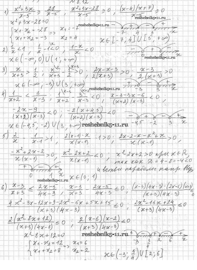 Готовая домашняя работа с ответами по Алгебре за 10 класс Мерзляк, Номировский, Поляков Учебник Алгоритм успеха Углубленный уровень Вентана-граф 2019 ФГОС - §8. Метод интервалов 8.12