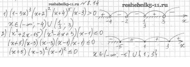 Готовая домашняя работа с ответами по Алгебре за 10 класс Мерзляк, Номировский, Поляков Учебник Алгоритм успеха Углубленный уровень Вентана-граф 2019 ФГОС - §8. Метод интервалов 8.14