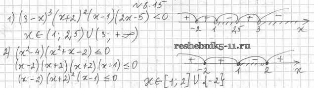 Готовая домашняя работа с ответами по Алгебре за 10 класс Мерзляк, Номировский, Поляков Учебник Алгоритм успеха Углубленный уровень Вентана-граф 2019 ФГОС - §8. Метод интервалов 8.15