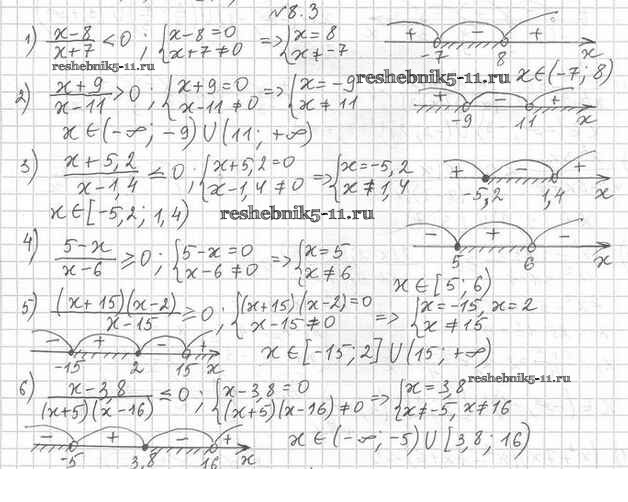 Готовая домашняя работа с ответами по Алгебре за 10 класс Мерзляк, Номировский, Поляков Учебник Алгоритм успеха Углубленный уровень Вентана-граф 2019 ФГОС - §8. Метод интервалов 8.3