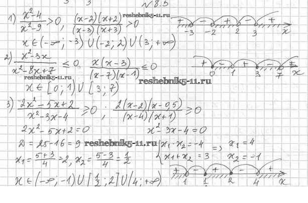 Готовая домашняя работа с ответами по Алгебре за 10 класс Мерзляк, Номировский, Поляков Учебник Алгоритм успеха Углубленный уровень Вентана-граф 2019 ФГОС - §8. Метод интервалов 8.5