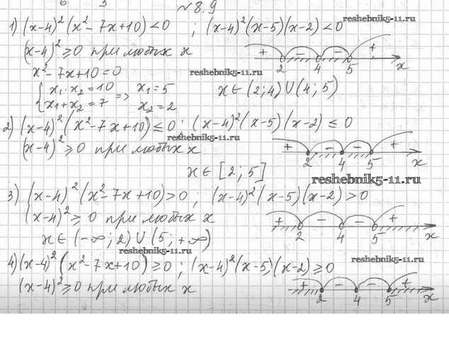 Готовая домашняя работа с ответами по Алгебре за 10 класс Мерзляк, Номировский, Поляков Учебник Алгоритм успеха Углубленный уровень Вентана-граф 2019 ФГОС - §8. Метод интервалов 8.9