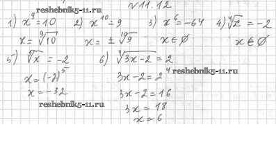 Готовая домашняя работа с ответами по Алгебре за 10 класс Мерзляк, Номировский, Поляков Учебник Алгоритм успеха Углубленный уровень Вентана-граф 2019 ФГОС - §11. Определение корня n-й степени. у= n√x 11.12