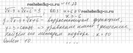 Готовая домашняя работа с ответами по Алгебре за 10 класс Мерзляк, Номировский, Поляков Учебник Алгоритм успеха Углубленный уровень Вентана-граф 2019 ФГОС - §11. Определение корня n-й степени. у= n√x 11.27