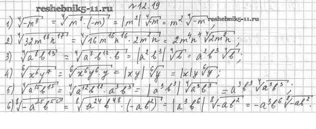 Готовая домашняя работа с ответами по Алгебре за 10 класс Мерзляк, Номировский, Поляков Учебник Алгоритм успеха Углубленный уровень Вентана-граф 2019 ФГОС - §12. Свойства корня n-й степени 12.19