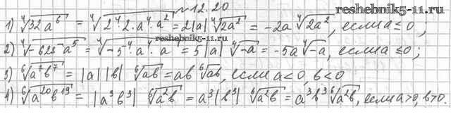 Готовая домашняя работа с ответами по Алгебре за 10 класс Мерзляк, Номировский, Поляков Учебник Алгоритм успеха Углубленный уровень Вентана-граф 2019 ФГОС - §12. Свойства корня n-й степени 12.20