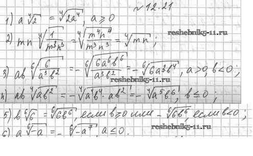 Готовая домашняя работа с ответами по Алгебре за 10 класс Мерзляк, Номировский, Поляков Учебник Алгоритм успеха Углубленный уровень Вентана-граф 2019 ФГОС - §12. Свойства корня n-й степени 12.21