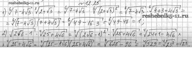 Готовая домашняя работа с ответами по Алгебре за 10 класс Мерзляк, Номировский, Поляков Учебник Алгоритм успеха Углубленный уровень Вентана-граф 2019 ФГОС - §12. Свойства корня n-й степени 12.25