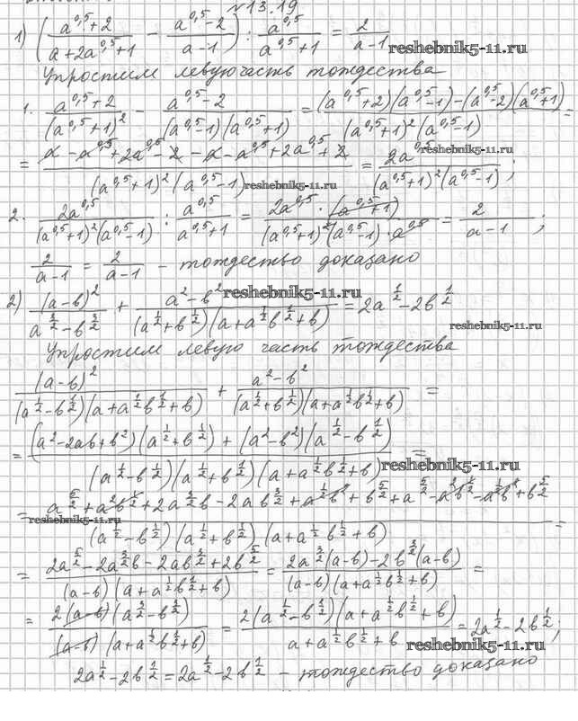 Готовая домашняя работа с ответами по Алгебре за 10 класс Мерзляк, Номировский, Поляков Учебник Алгоритм успеха Углубленный уровень Вентана-граф 2019 ФГОС - §13. Степень с рациональным показателем и её свойства 13.19
