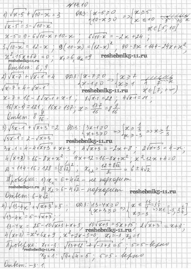 Готовая домашняя работа с ответами по Алгебре за 10 класс Мерзляк, Номировский, Поляков Учебник Алгоритм успеха Углубленный уровень Вентана-граф 2019 ФГОС - §14. Иррациональные уравнения 14.10