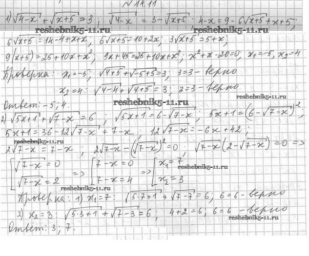 Готовая домашняя работа с ответами по Алгебре за 10 класс Мерзляк, Номировский, Поляков Учебник Алгоритм успеха Углубленный уровень Вентана-граф 2019 ФГОС - §14. Иррациональные уравнения 14.11