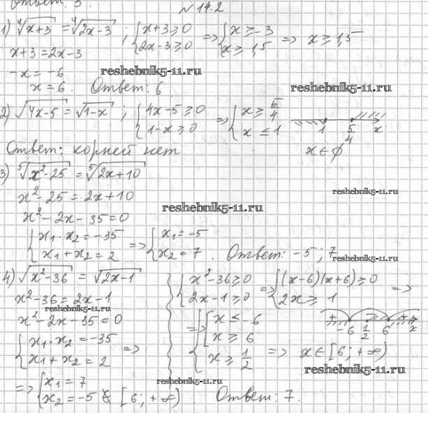 Готовая домашняя работа с ответами по Алгебре за 10 класс Мерзляк, Номировский, Поляков Учебник Алгоритм успеха Углубленный уровень Вентана-граф 2019 ФГОС - §14. Иррациональные уравнения 14.2