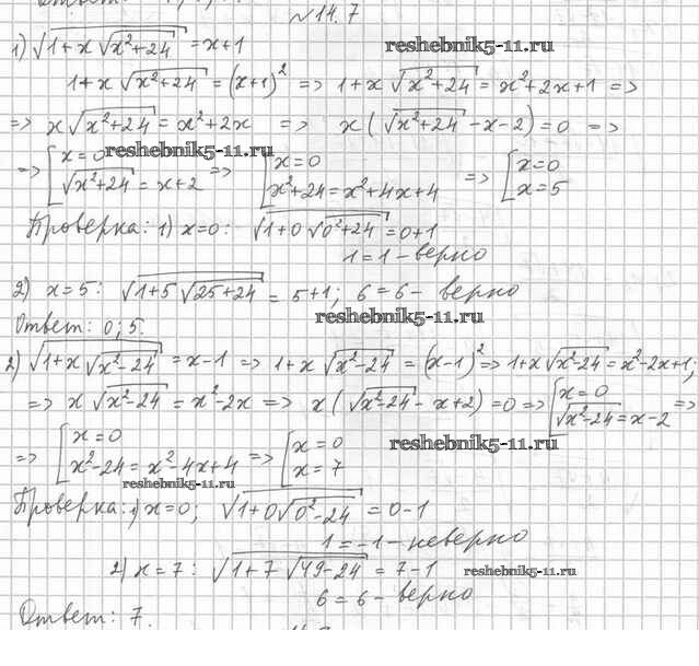 Готовая домашняя работа с ответами по Алгебре за 10 класс Мерзляк, Номировский, Поляков Учебник Алгоритм успеха Углубленный уровень Вентана-граф 2019 ФГОС - §14. Иррациональные уравнения 14.7