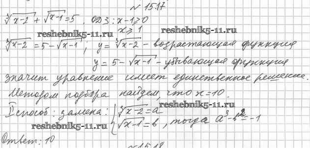 Готовая домашняя работа с ответами по Алгебре за 10 класс Мерзляк, Номировский, Поляков Учебник Алгоритм успеха Углубленный уровень Вентана-граф 2019 ФГОС - §15. Различные приёмы решения иррациональных уравнений и их систем 15.17