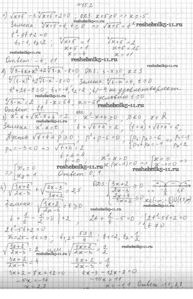 Готовая домашняя работа с ответами по Алгебре за 10 класс Мерзляк, Номировский, Поляков Учебник Алгоритм успеха Углубленный уровень Вентана-граф 2019 ФГОС - §15. Различные приёмы решения иррациональных уравнений и их систем 15.2