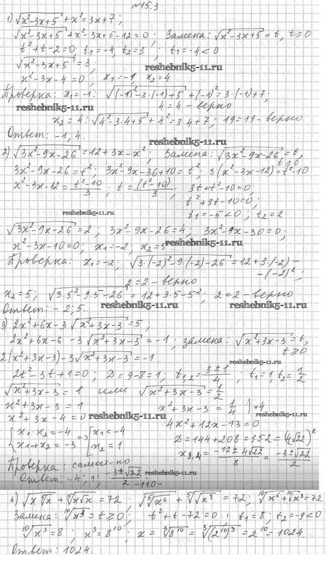 Готовая домашняя работа с ответами по Алгебре за 10 класс Мерзляк, Номировский, Поляков Учебник Алгоритм успеха Углубленный уровень Вентана-граф 2019 ФГОС - §15. Различные приёмы решения иррациональных уравнений и их систем 15.3