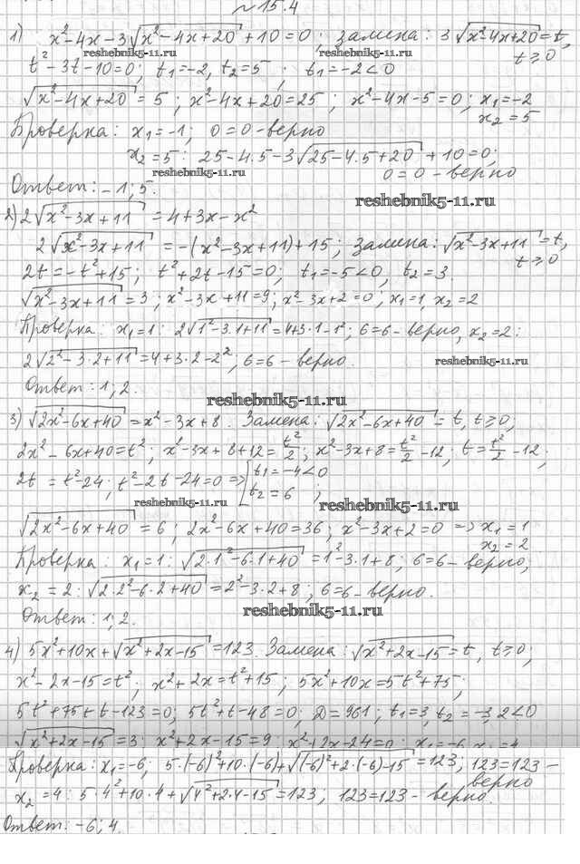 Готовая домашняя работа с ответами по Алгебре за 10 класс Мерзляк, Номировский, Поляков Учебник Алгоритм успеха Углубленный уровень Вентана-граф 2019 ФГОС - §15. Различные приёмы решения иррациональных уравнений и их систем 15.4