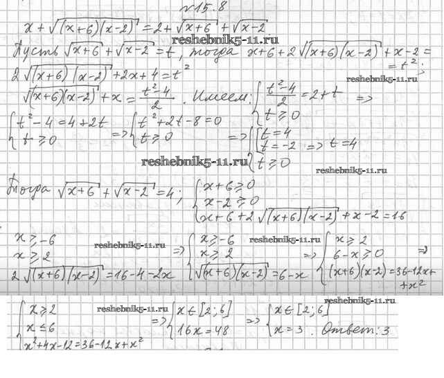 Готовая домашняя работа с ответами по Алгебре за 10 класс Мерзляк, Номировский, Поляков Учебник Алгоритм успеха Углубленный уровень Вентана-граф 2019 ФГОС - §15. Различные приёмы решения иррациональных уравнений и их систем 15.8