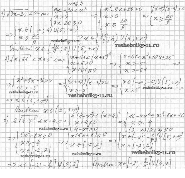 Готовая домашняя работа с ответами по Алгебре за 10 класс Мерзляк, Номировский, Поляков Учебник Алгоритм успеха Углубленный уровень Вентана-граф 2019 ФГОС - §16. Иррациональные неравенства 16.4