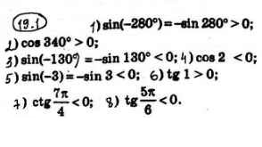 Готовая домашняя работа с ответами по Алгебре за 10 класс Мерзляк, Номировский, Поляков Учебник Алгоритм успеха Углубленный уровень Вентана-граф 2019 ФГОС - §19. Знаки значений тригонометрических функций. Чётность и нечётность тригонометрических функций 19.1