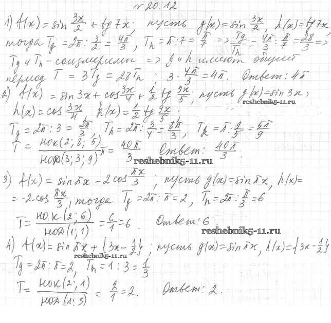 Готовая домашняя работа с ответами по Алгебре за 10 класс Мерзляк, Номировский, Поляков Учебник Алгоритм успеха Углубленный уровень Вентана-граф 2019 ФГОС - §20. Периодические функции 20.12