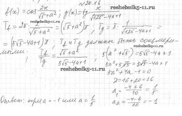 Готовая домашняя работа с ответами по Алгебре за 10 класс Мерзляк, Номировский, Поляков Учебник Алгоритм успеха Углубленный уровень Вентана-граф 2019 ФГОС - §20. Периодические функции 20.16