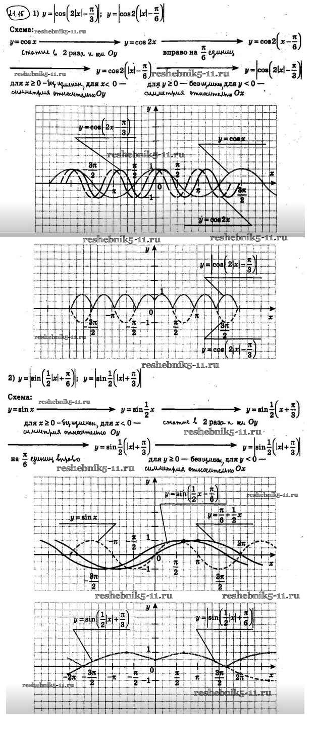 Готовая домашняя работа с ответами по Алгебре за 10 класс Мерзляк, Номировский, Поляков Учебник Алгоритм успеха Углубленный уровень Вентана-граф 2019 ФГОС - §21. Свойства и графики функций у = sin x и y = cos x 21.15