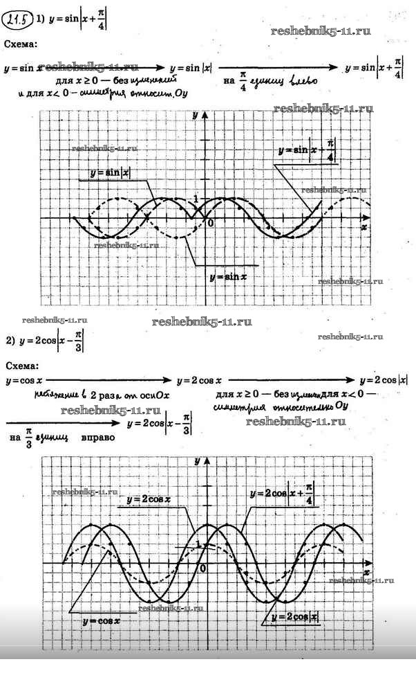 Готовая домашняя работа с ответами по Алгебре за 10 класс Мерзляк, Номировский, Поляков Учебник Алгоритм успеха Углубленный уровень Вентана-граф 2019 ФГОС - §21. Свойства и графики функций у = sin x и y = cos x 21.5