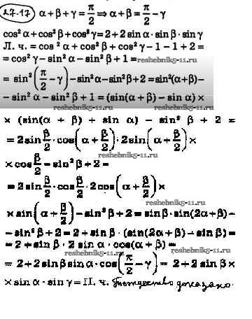 Готовая домашняя работа с ответами по Алгебре за 10 класс Мерзляк, Номировский, Поляков Учебник Алгоритм успеха Углубленный уровень Вентана-граф 2019 ФГОС - §27. Формулы для преобразования суммы, разности и произведения тригонометрических функций 27.17