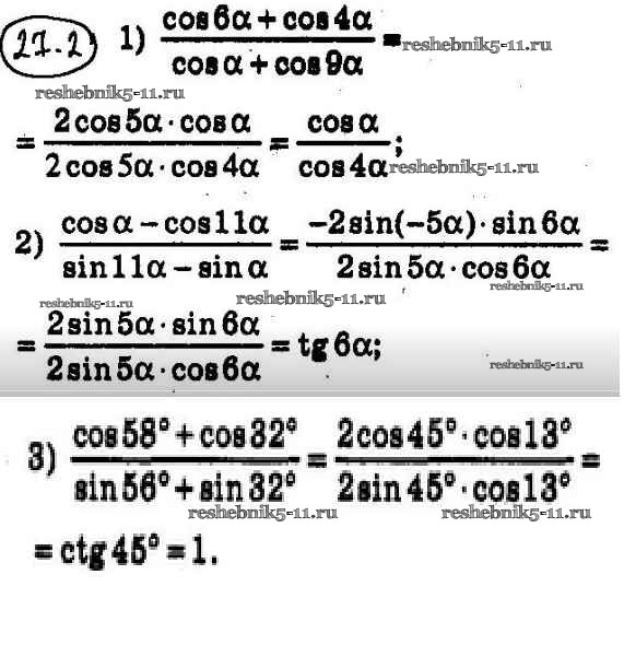 Готовая домашняя работа с ответами по Алгебре за 10 класс Мерзляк, Номировский, Поляков Учебник Алгоритм успеха Углубленный уровень Вентана-граф 2019 ФГОС - §27. Формулы для преобразования суммы, разности и произведения тригонометрических функций 27.2