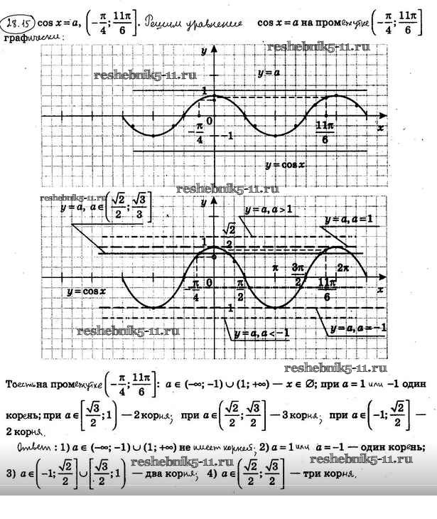 Готовая домашняя работа с ответами по Алгебре за 10 класс Мерзляк, Номировский, Поляков Учебник Алгоритм успеха Углубленный уровень Вентана-граф 2019 ФГОС - §28. Уравнение cosx = b 28.15