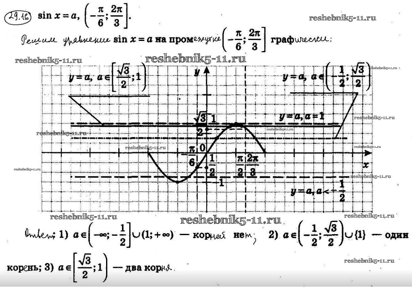 Готовая домашняя работа с ответами по Алгебре за 10 класс Мерзляк, Номировский, Поляков Учебник Алгоритм успеха Углубленный уровень Вентана-граф 2019 ФГОС - §29. Уравнение sinx = b 29.16