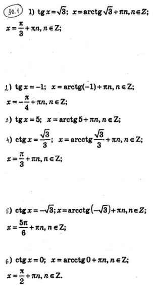 Готовая домашняя работа с ответами по Алгебре за 10 класс Мерзляк, Номировский, Поляков Учебник Алгоритм успеха Углубленный уровень Вентана-граф 2019 ФГОС - §30. Уравнение tgx = b, ctgx = b 30.1