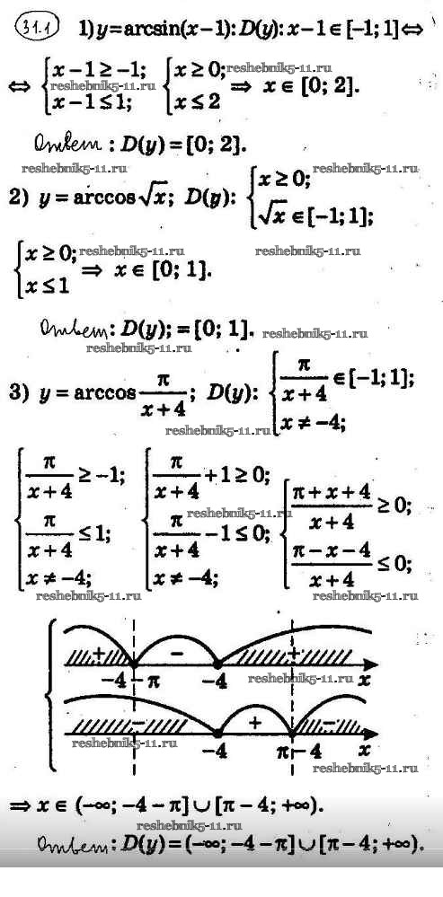 Готовая домашняя работа с ответами по Алгебре за 10 класс Мерзляк, Номировский, Поляков Учебник Алгоритм успеха Углубленный уровень Вентана-граф 2019 ФГОС - §31. Функции у = arccosx, y = arcsinx, у = arctgx и у = arcctgx 31.1