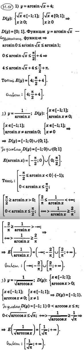 Готовая домашняя работа с ответами по Алгебре за 10 класс Мерзляк, Номировский, Поляков Учебник Алгоритм успеха Углубленный уровень Вентана-граф 2019 ФГОС - §31. Функции у = arccosx, y = arcsinx, у = arctgx и у = arcctgx 31.17