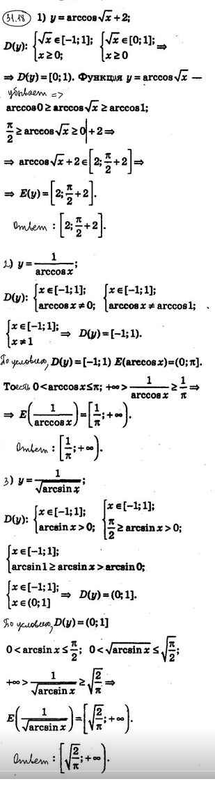 Готовая домашняя работа с ответами по Алгебре за 10 класс Мерзляк, Номировский, Поляков Учебник Алгоритм успеха Углубленный уровень Вентана-граф 2019 ФГОС - §31. Функции у = arccosx, y = arcsinx, у = arctgx и у = arcctgx 31.18