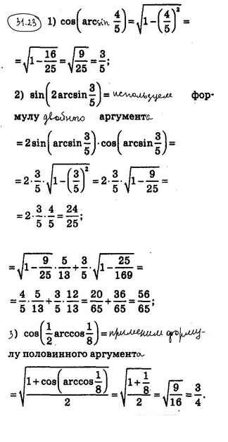 Готовая домашняя работа с ответами по Алгебре за 10 класс Мерзляк, Номировский, Поляков Учебник Алгоритм успеха Углубленный уровень Вентана-граф 2019 ФГОС - §31. Функции у = arccosx, y = arcsinx, у = arctgx и у = arcctgx 31.23