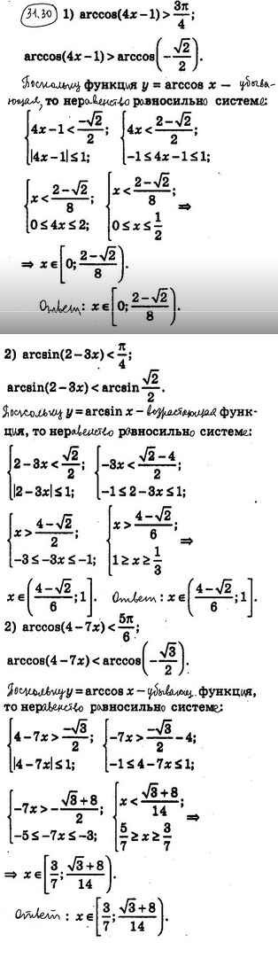 Готовая домашняя работа с ответами по Алгебре за 10 класс Мерзляк, Номировский, Поляков Учебник Алгоритм успеха Углубленный уровень Вентана-граф 2019 ФГОС - §31. Функции у = arccosx, y = arcsinx, у = arctgx и у = arcctgx 31.30