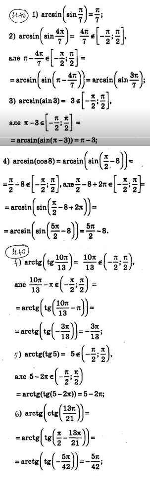 Готовая домашняя работа с ответами по Алгебре за 10 класс Мерзляк, Номировский, Поляков Учебник Алгоритм успеха Углубленный уровень Вентана-граф 2019 ФГОС - §31. Функции у = arccosx, y = arcsinx, у = arctgx и у = arcctgx 31.40