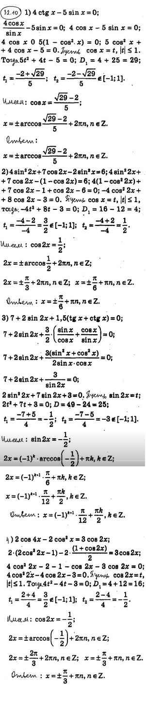 Готовая домашняя работа с ответами по Алгебре за 10 класс Мерзляк, Номировский, Поляков Учебник Алгоритм успеха Углубленный уровень Вентана-граф 2019 ФГОС - §32. Тригонометрические уравнения, сводящиеся к алгебраическим 32.10
