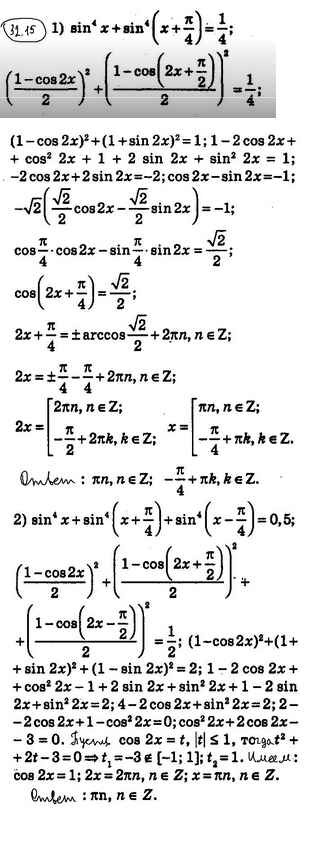 Готовая домашняя работа с ответами по Алгебре за 10 класс Мерзляк, Номировский, Поляков Учебник Алгоритм успеха Углубленный уровень Вентана-граф 2019 ФГОС - §32. Тригонометрические уравнения, сводящиеся к алгебраическим 32.15