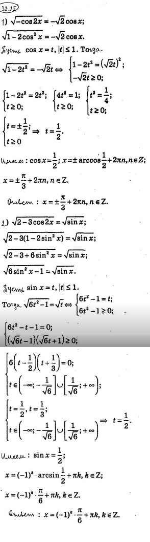 §32. Тригонометрические уравнения, сводящиеся к алгебраическим
