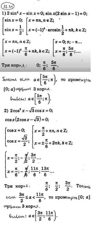Готовая домашняя работа с ответами по Алгебре за 10 класс Мерзляк, Номировский, Поляков Учебник Алгоритм успеха Углубленный уровень Вентана-граф 2019 ФГОС - §32. Тригонометрические уравнения, сводящиеся к алгебраическим 32.31