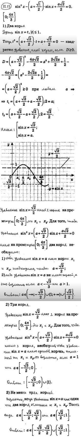 Готовая домашняя работа с ответами по Алгебре за 10 класс Мерзляк, Номировский, Поляков Учебник Алгоритм успеха Углубленный уровень Вентана-граф 2019 ФГОС - §32. Тригонометрические уравнения, сводящиеся к алгебраическим 32.33