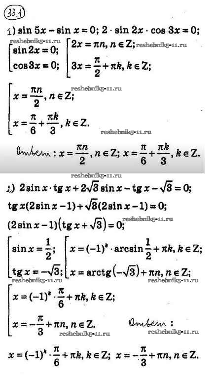Готовая домашняя работа с ответами по Алгебре за 10 класс Мерзляк, Номировский, Поляков Учебник Алгоритм успеха Углубленный уровень Вентана-граф 2019 ФГОС - §33. Решение тригонометрических уравнений методом разложения на множители. Применение ограниченности тригонометрических функций 33.1