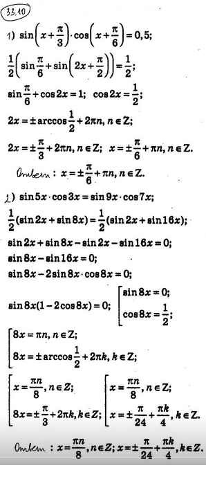 Готовая домашняя работа с ответами по Алгебре за 10 класс Мерзляк, Номировский, Поляков Учебник Алгоритм успеха Углубленный уровень Вентана-граф 2019 ФГОС - §33. Решение тригонометрических уравнений методом разложения на множители. Применение ограниченности тригонометрических функций 33.10