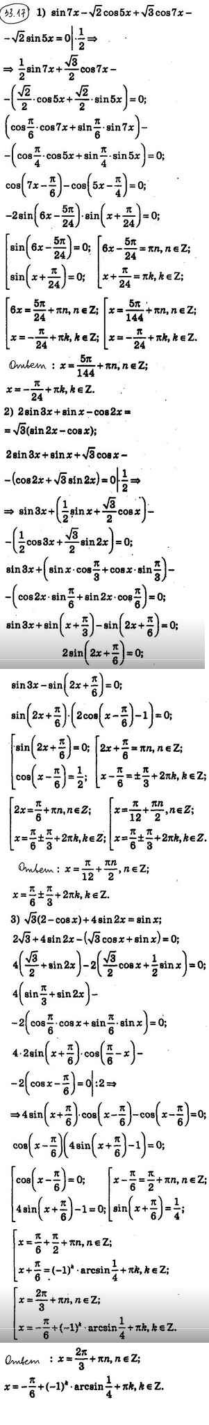 Готовая домашняя работа с ответами по Алгебре за 10 класс Мерзляк, Номировский, Поляков Учебник Алгоритм успеха Углубленный уровень Вентана-граф 2019 ФГОС - §33. Решение тригонометрических уравнений методом разложения на множители. Применение ограниченности тригонометрических функций 33.17