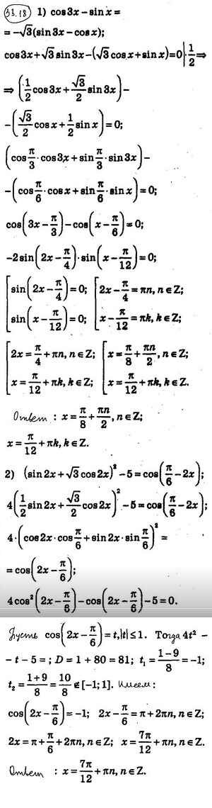Готовая домашняя работа с ответами по Алгебре за 10 класс Мерзляк, Номировский, Поляков Учебник Алгоритм успеха Углубленный уровень Вентана-граф 2019 ФГОС - §33. Решение тригонометрических уравнений методом разложения на множители. Применение ограниченности тригонометрических функций 33.18