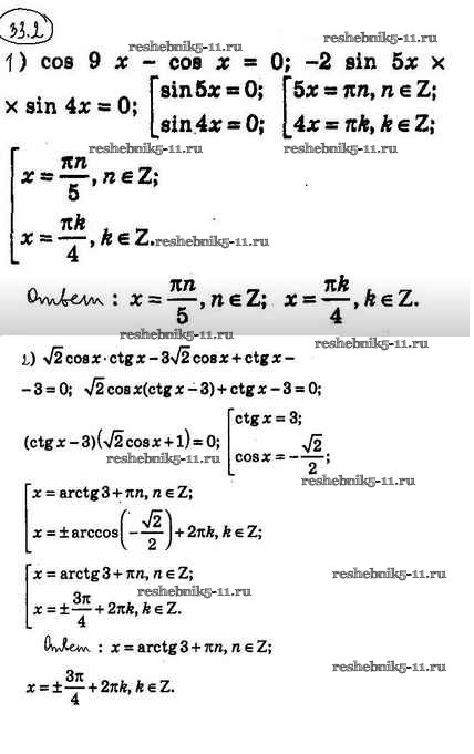 Готовая домашняя работа с ответами по Алгебре за 10 класс Мерзляк, Номировский, Поляков Учебник Алгоритм успеха Углубленный уровень Вентана-граф 2019 ФГОС - §33. Решение тригонометрических уравнений методом разложения на множители. Применение ограниченности тригонометрических функций 33.2