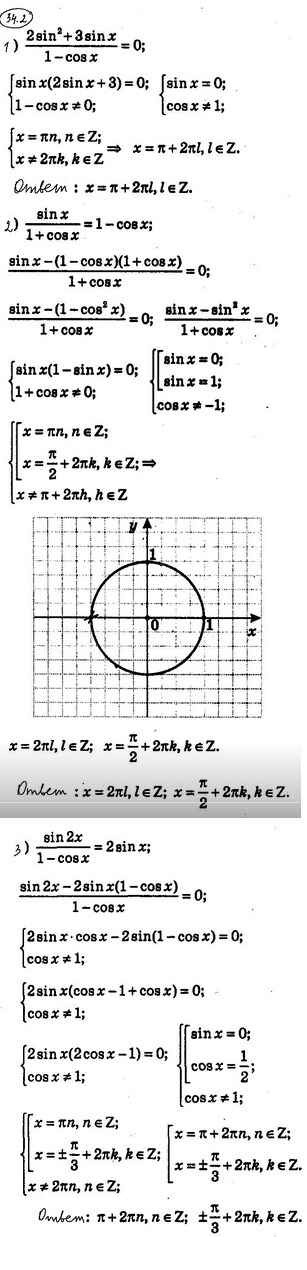 Готовая домашняя работа с ответами по Алгебре за 10 класс Мерзляк, Номировский, Поляков Учебник Алгоритм успеха Углубленный уровень Вентана-граф 2019 ФГОС - §34. О равносильных переходах при решении тригонометрических уравнений 34.2